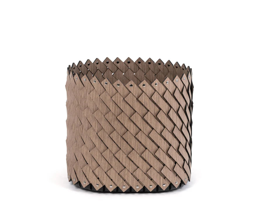 Das edle Holz von Alpi verleiht dem charakteristischen Pinetti-Flechtmuster eine neue Ausdruckskraft und unterstreicht den architektonischen Charakter des Designs. Der quadratische Korb bietet grosszügigen Stauraum für Handtücher, Zeitschriften, Decken oder Schuhe und eignet sich ideal für Wohn- und Objektbereiche.