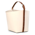Gefertigt aus widerstandsfähigem, recyceltem Leder. Stabiler Boden für sicheren Stand. Tragegriffe in verschiedenen Lederfarben erhältlich.
