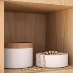 Das Schalen-Trio CAPSULE von Schönbuch vereint matt lackiertes Holz mit geöltem Massivholz. Das Set besteht aus zwei stapelbaren Schalen und einem vielseitigen Deckel, der auch als flache Schale dient. Erhältlich in Vanille mit Eiche. Eignet sich ideal zur stilvollen Aufbewahrung von Alltagsgegenständen, Büroutensilien oder Schmuck.