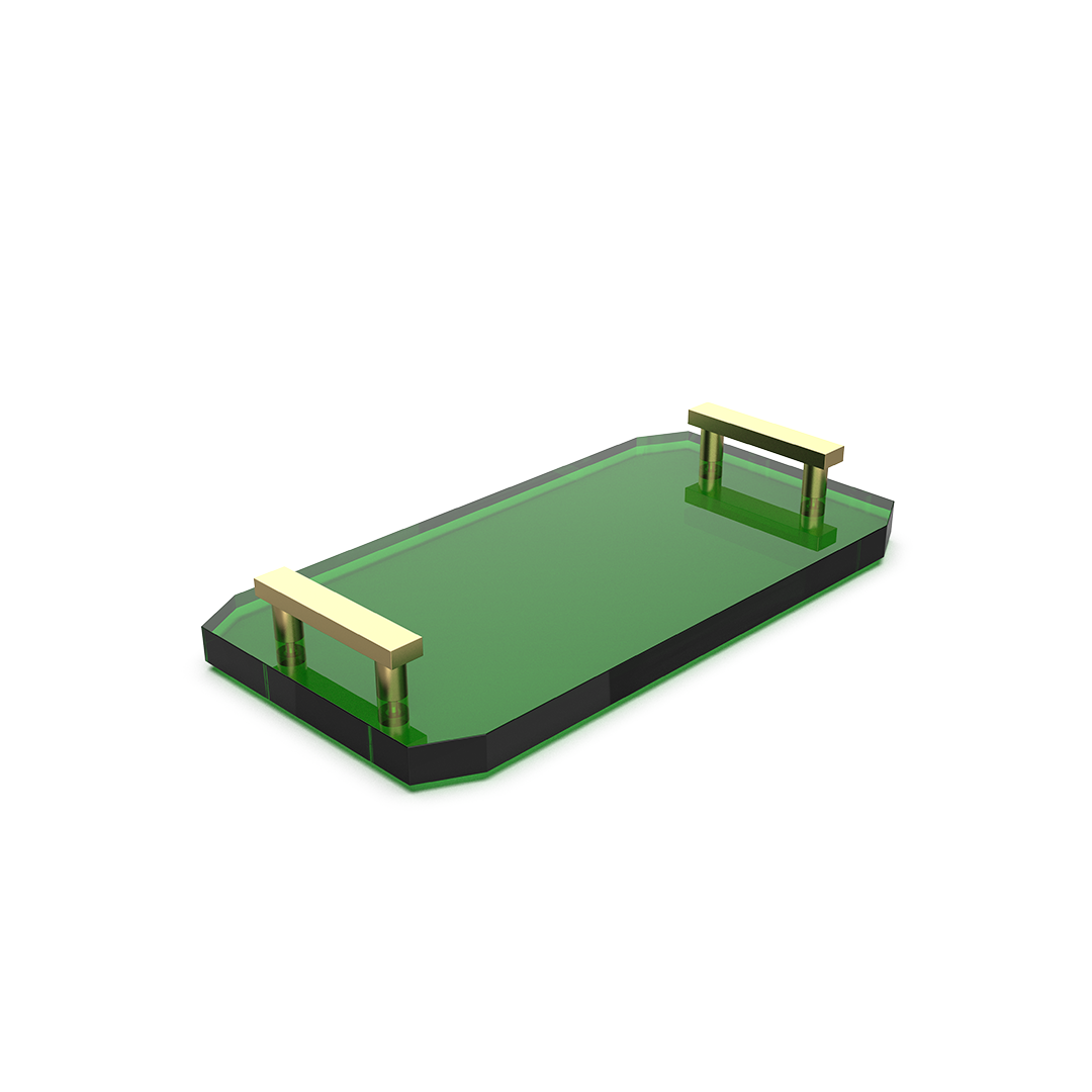 Das Tablett KRISTALL aus der gleichnamigen Serie überzeugt durch seine elegante Ausstrahlung und präzise Verarbeitung. Mit seiner klaren Form und der edlen Oberfläche in verschiedenen Farben mit goldenen Akzenten eignet es sich ideal zum stilvollen Servieren oder als dekoratives Element auf Tisch, Sideboard oder Konsole.