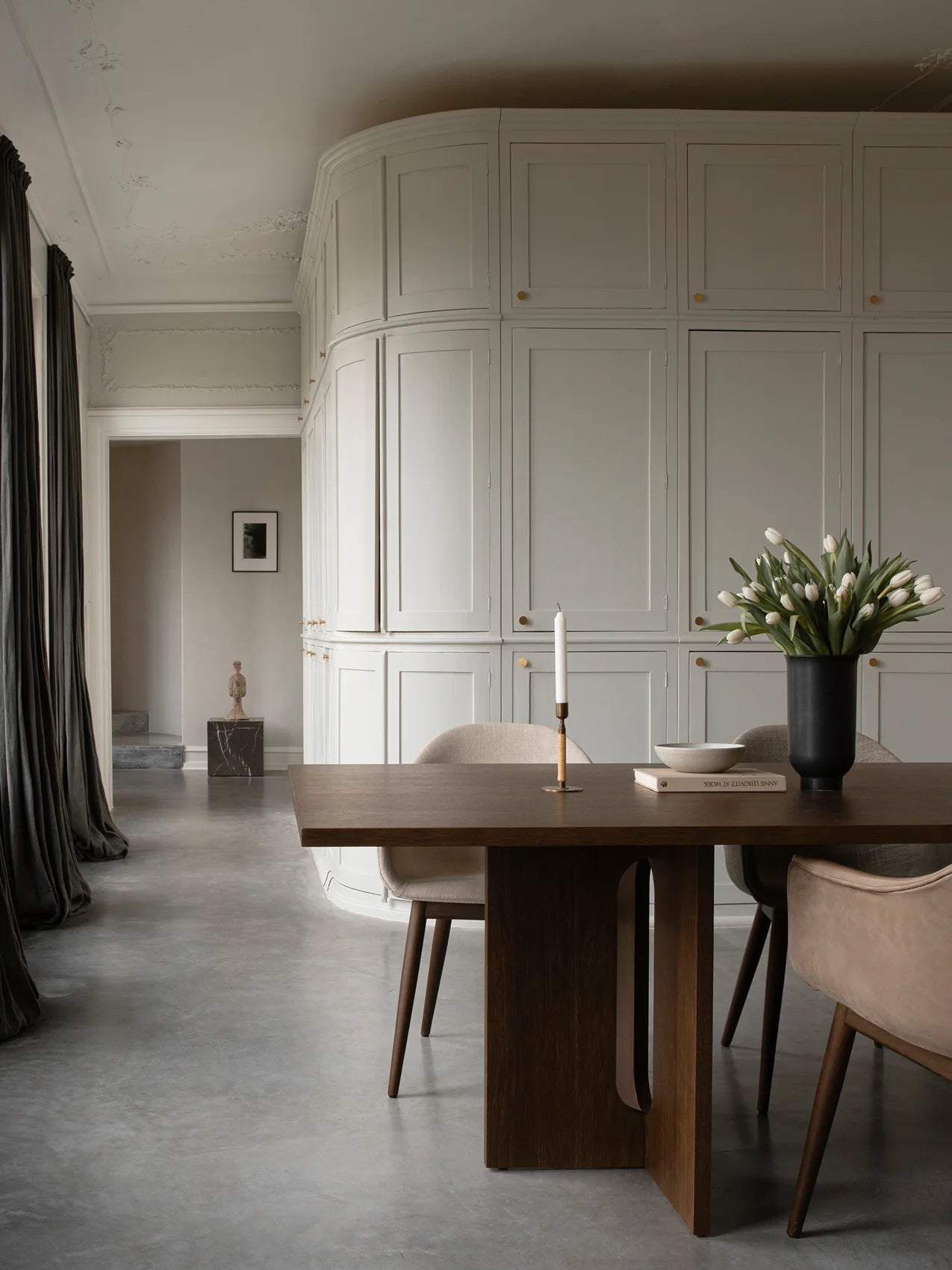 Der runde Androgyne Dining Table ist ein kraftvolles Statement aus natürlichen Materialien und klarer Formensprache. Entworfen von Danielle Siggerud, bietet er je nach Grösse bequem Platz für 4 bis 8 Personen. Tischplatte und Gestell lassen sich frei kombinieren und ermöglichen individuelle Material- und Farbkonzepte.