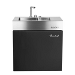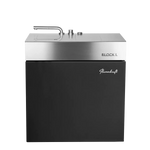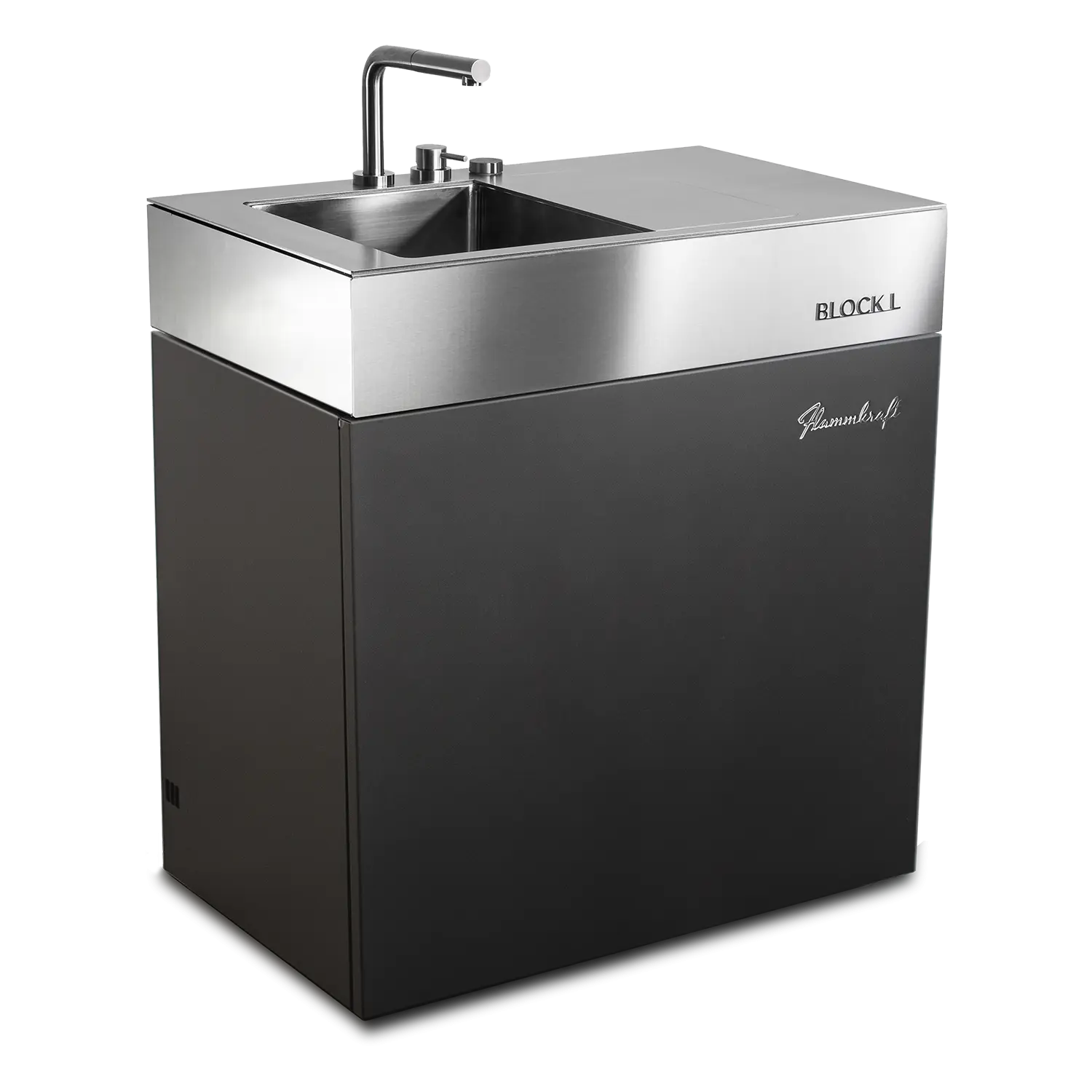 Der Block L bringt fliessendes Wasser direkt an den Grill. Waschen, Vorbereiten, Sous-Vide oder Eis lagern, alles geschieht dort, wo gekocht wird. Hochwertige Materialien, durchdachte Technik und kompromisslose Verarbeitung machen ihn zur perfekten Ergänzung jeder Flammkraft-Outdoorküche.