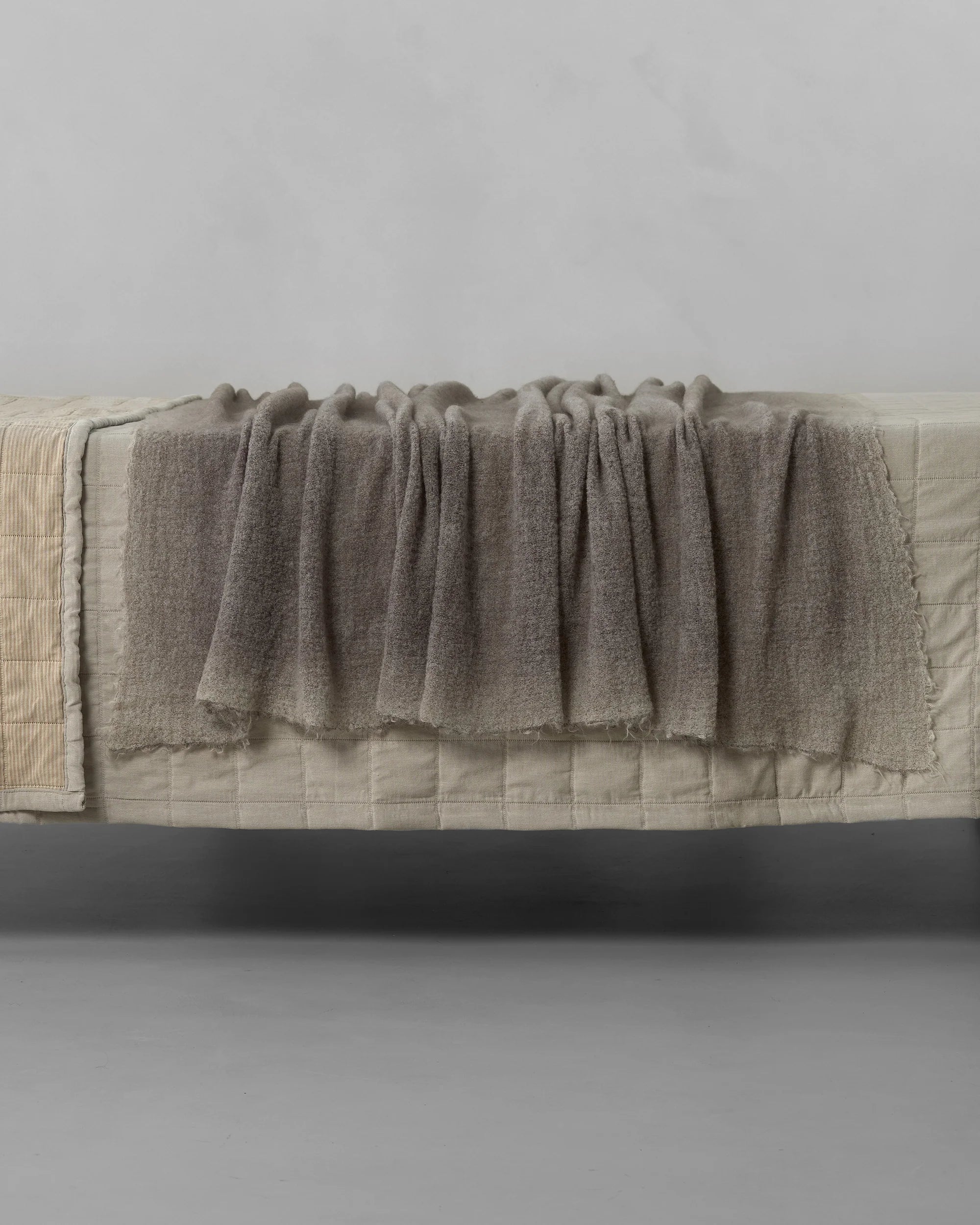 Die Society Limonta Maltinto Ted Decke in Grigio überzeugt durch ihre leichte, weiche Haptik und das markante, unregelmäßige Design. Die kunstvolle Airbrush-Technik verleiht jeder Decke einen individuellen Used-Look, bei dem die Farbe frei und doch gezielt ins Gewebe eindringt. Perfekt für stilbewusste Wohnräume.