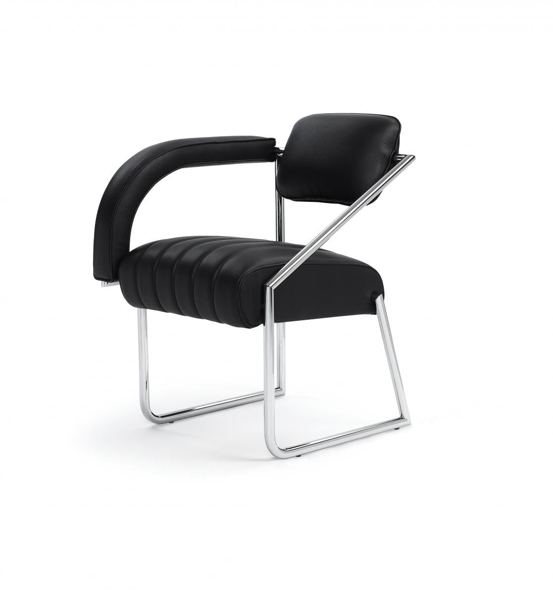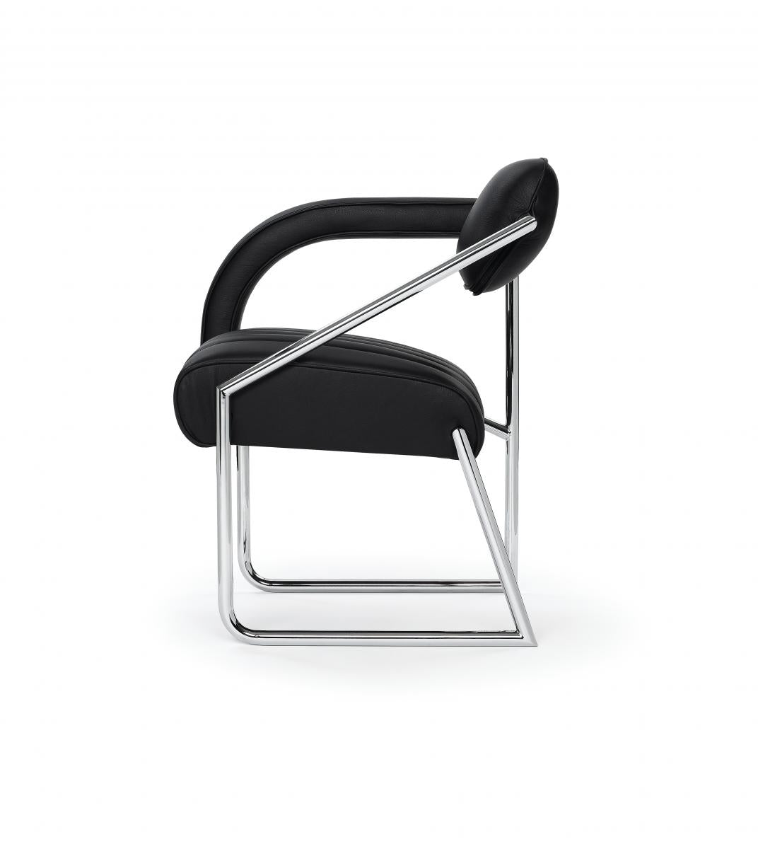 Gestell aus verchromtem Stahlrohr. Buchenrahmen mit Gummigurten. Polsterung aus Polyurethan mit Polyesterwatte. Bezug aus Stoff oder Leder. Kunststoffgleiter in Schwarz.