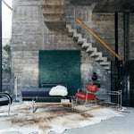 Der ikonische Armstuhl von Eileen Gray besticht durch sein provokatives Design – eine fehlende Armlehne, die bewusst mehr Bewegungsfreiheit schenkt. Dieser Nonkonformist auf Samtpfoten verbindet Funktionalität mit unerwarteter Ästhetik. Ein Meisterwerk des pragmatischen Understatements, das Erwartungen herausfordert und dennoch zeitlose Eleganz ausstrahlt.