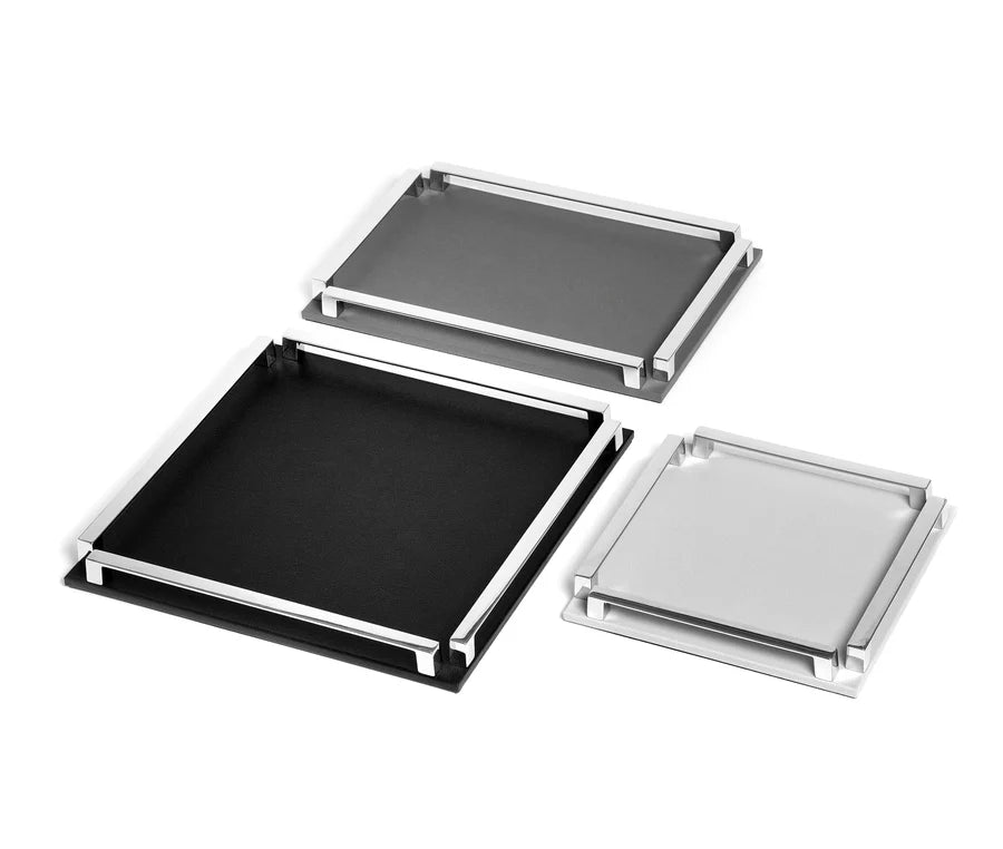 Eine rutschfeste Unterseite sorgt für sicheren Halt im täglichen Gebrauch. Die vier Griffe setzen stilvolle Akzente und sind wahlweise in Chrom, Gold oder brüniertem Messing ausgeführt. Das Paul Tablett eignet sich sowohl als dekoratives Element als auch als funktionales Servier- oder Ablagetablett und fügt sich harmonisch in anspruchsvolle Wohn- und Arbeitsbereiche ein. Eine große Auswahl an Lederfarben und -texturen ist auf Anfrage erhältlich.