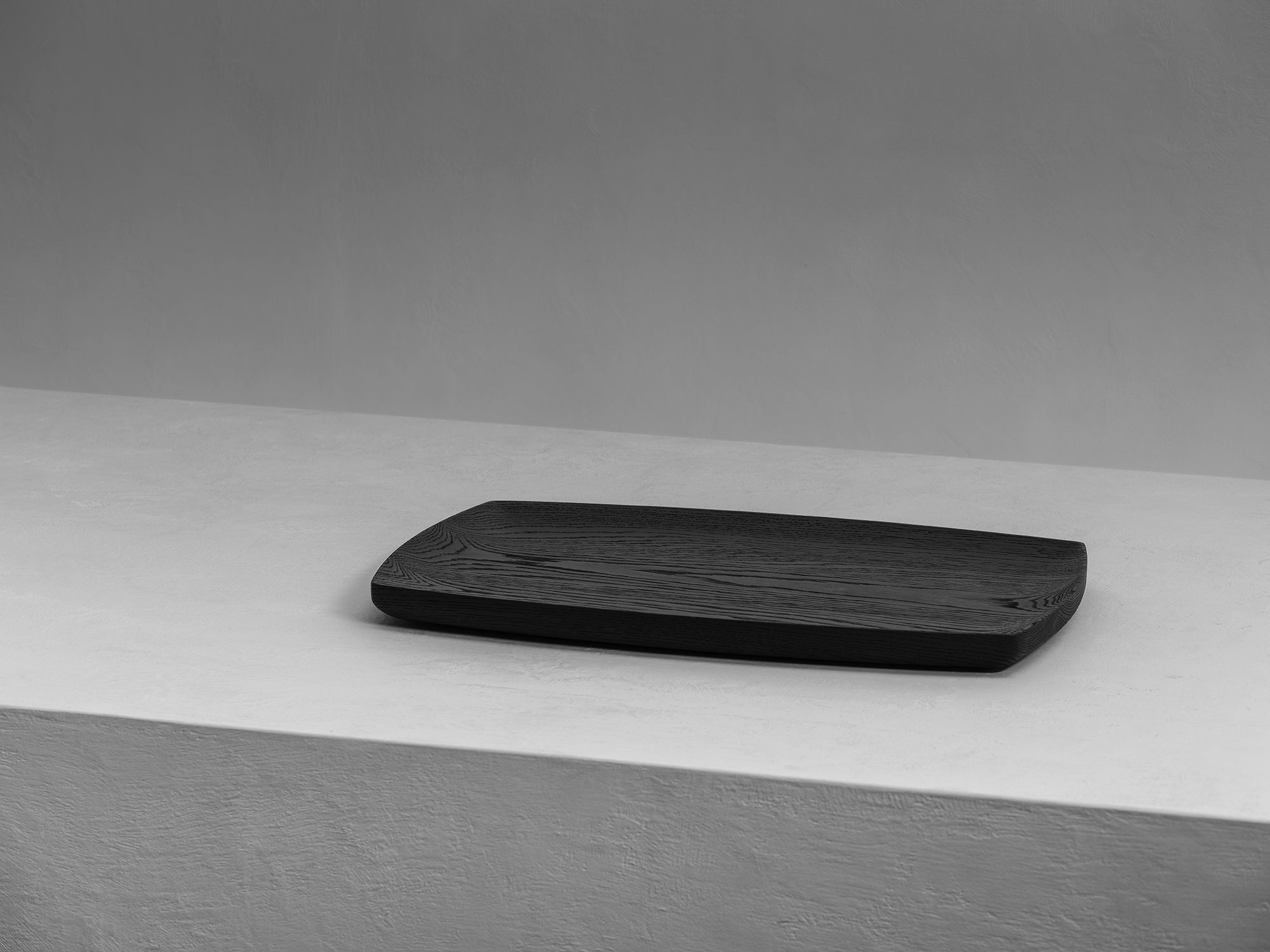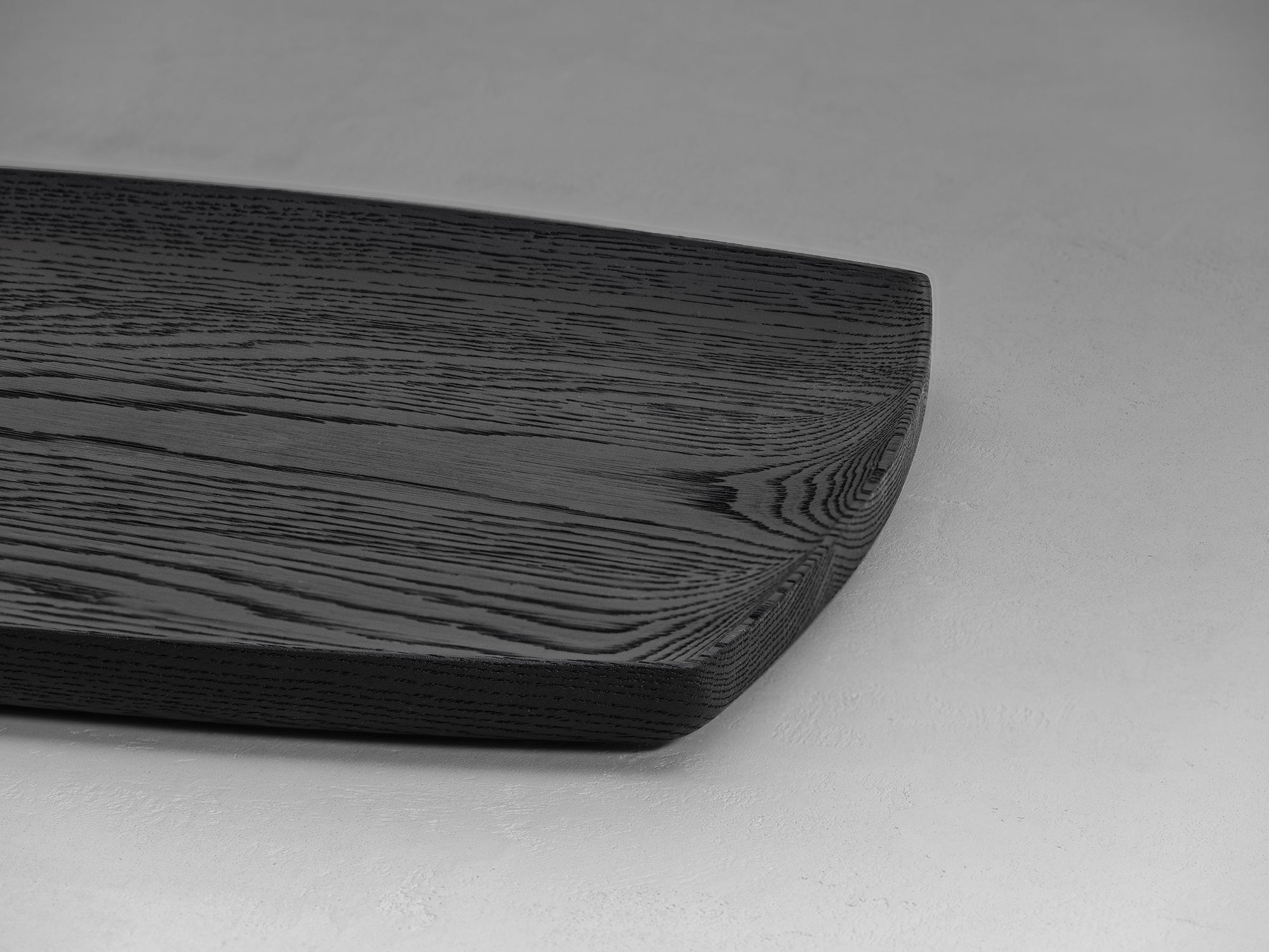 Holztablett mit abgerundeten Ecken und einer konkaven Oberfläche aus französischer Eiche.