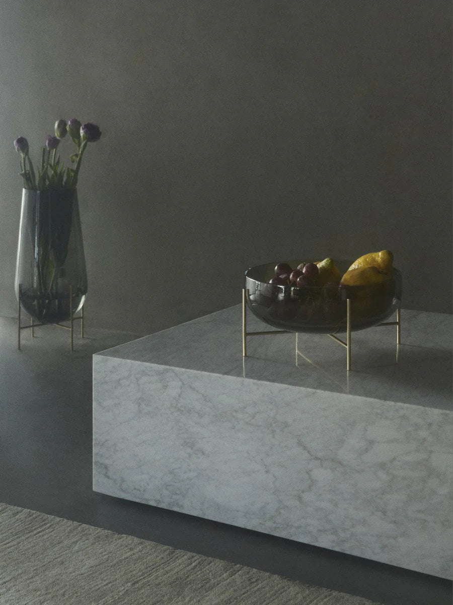 Die Échasse Bowl interpretiert klassische Glasschalen auf moderne, spielerische Weise neu. Entworfen von Theresa Rand, scheint die Schale dank ihrer schlanken, stelzenartigen Beine aus Glas und Messing beinahe zu schweben. Ein stilvoller Blickfang als Centerpiece oder elegante Ablage.
