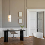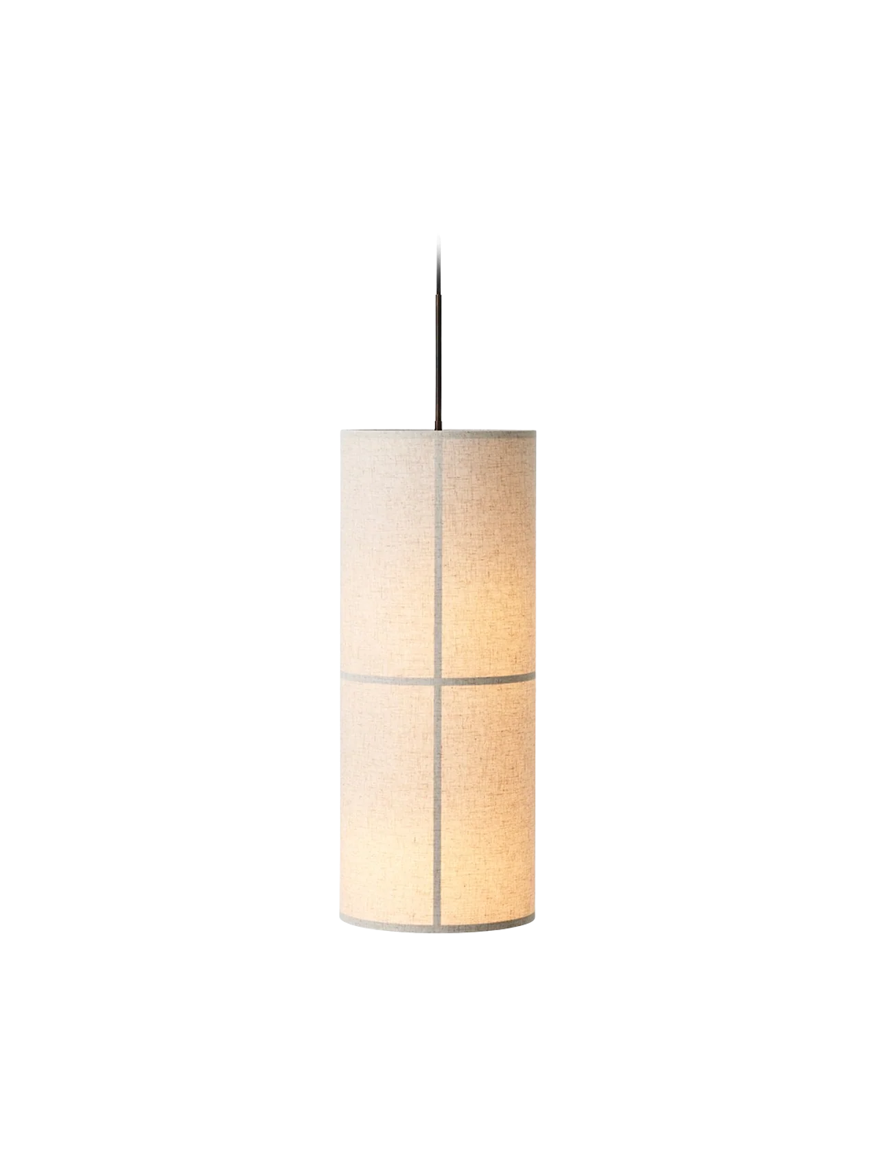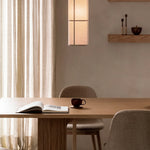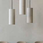 Die Hashira Pendant Lamp spendet warmes, rundum diffuses Licht und greift die charakteristische, säulenartige Form der Kollektion auf. Der textile Schirm verteilt das Licht nach oben und unten und sorgt für eine ruhige, wohnliche Atmosphäre – ideal über Esstischen oder in Empfangsbereichen.