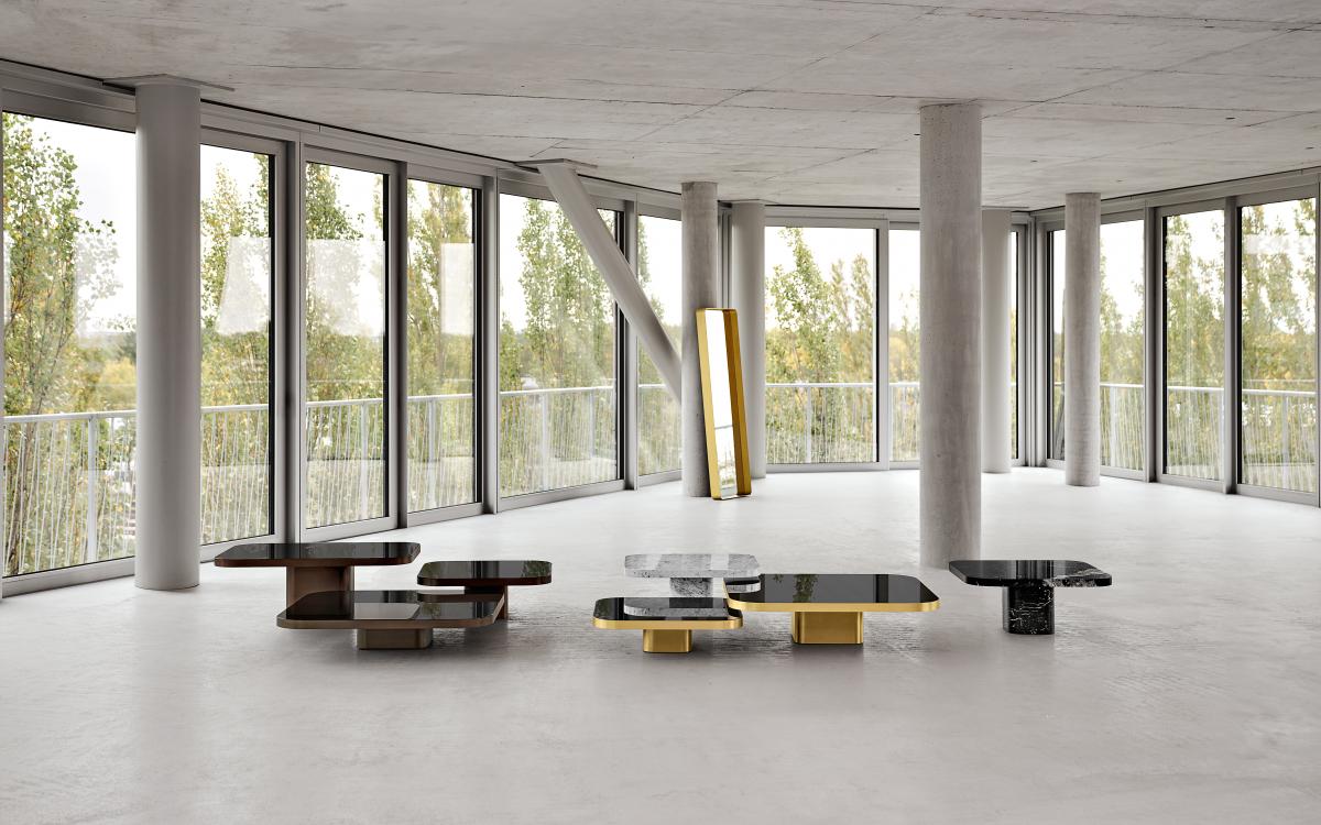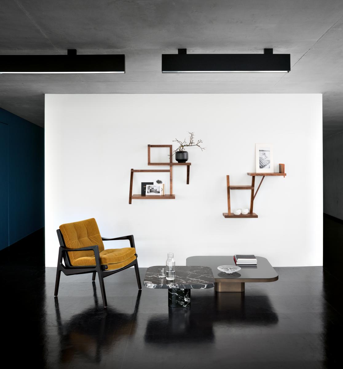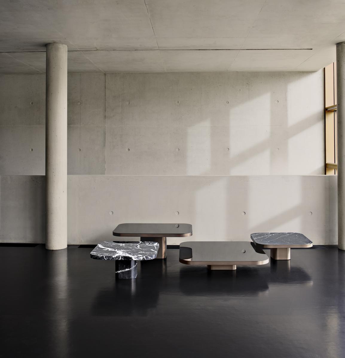 Couchtisch aus massivem Marmor in Nero Marquina oder Bianco Carrara, poliert und imprägniert. Höhenverstellbare Filzgleiter.