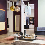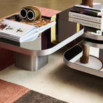 Der Bow Beistelltisch von Guilherme Torres verbindet 70er-Jahre-Ästhetik mit zeitgenössischem Design. Über einem Sockel mit sanften Rundungen schwebt die Tischplatte aus Glas oder Marmor – die metallisch beschichtete Korpusoberfläche zitiert futuristische Entwürfe. In fünf Größen erhältlich, lassen sich die Tische flexibel übereinander schieben und schaffen so eine skulpturale Komposition mit großzügigen Ablageflächen. Lässige Eleganz trifft funktionales Design.