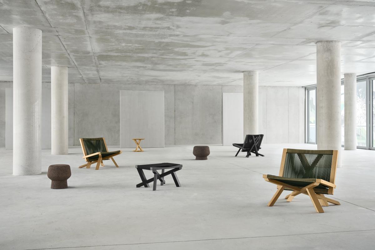Hocker oder Beistelltisch. Dunkler Kork mit Imprägnierung, aus einem Block gefräst. Auch in anderen Grössen erhältlich.