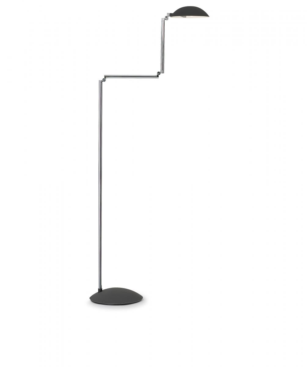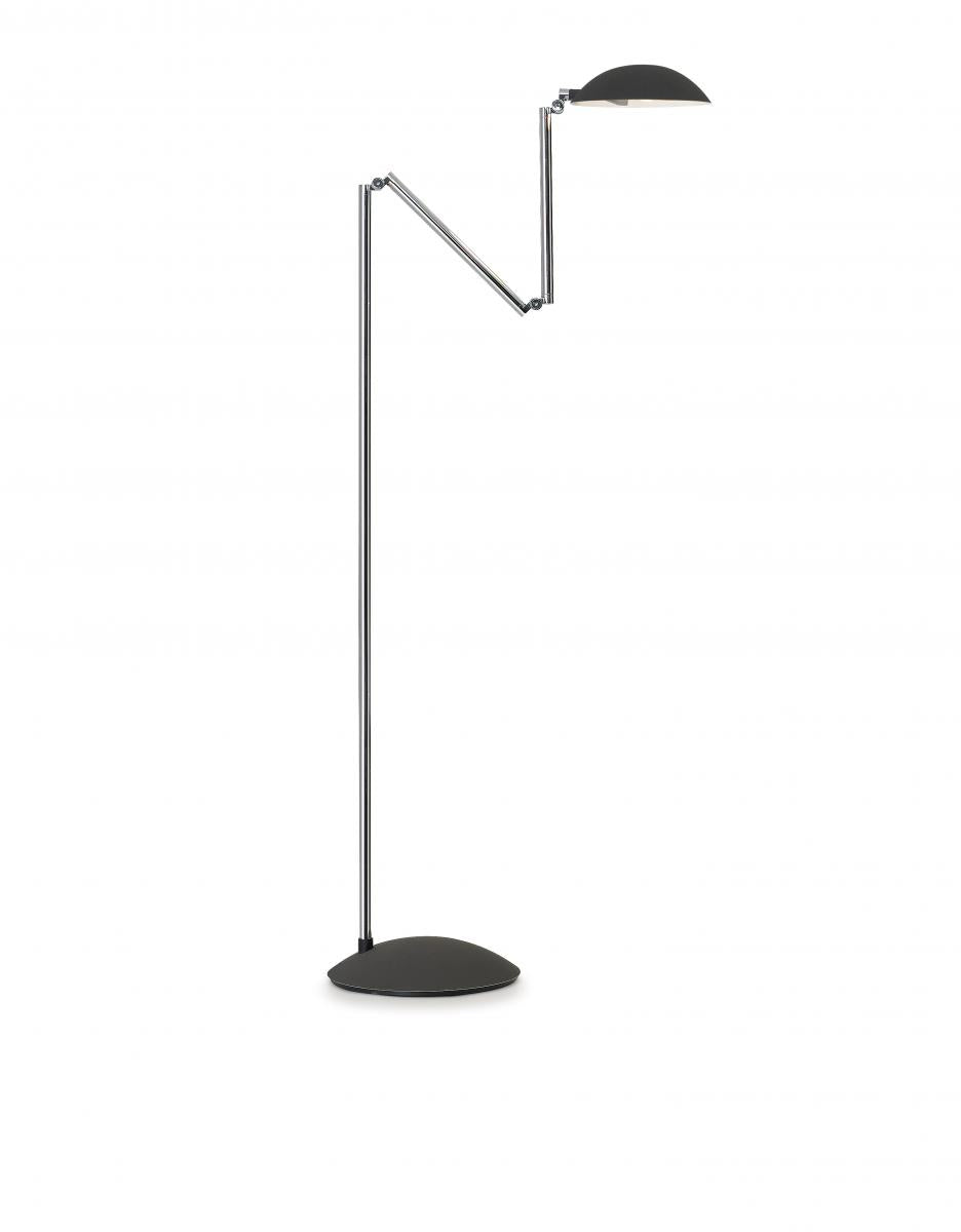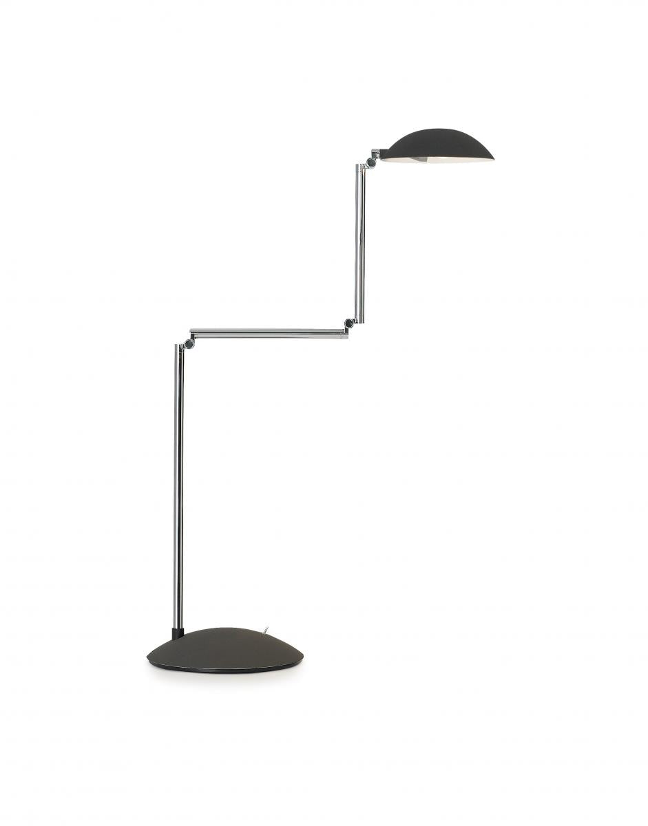 Fuss und Reflektor aus Metall mit matt schwar- zem Strukturlack oder verchromt. Rohre und Gelenke aus Metall, verchromt.