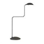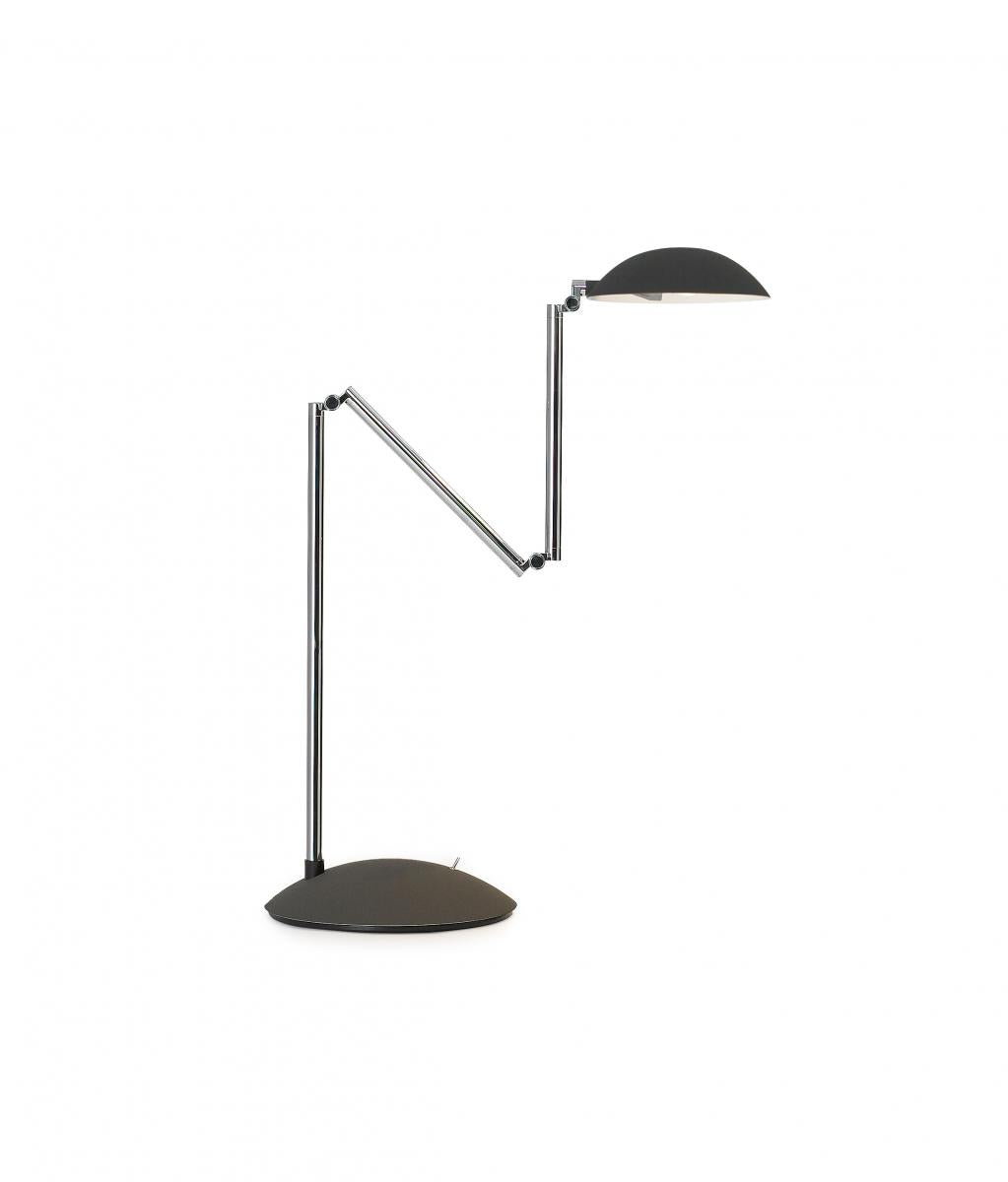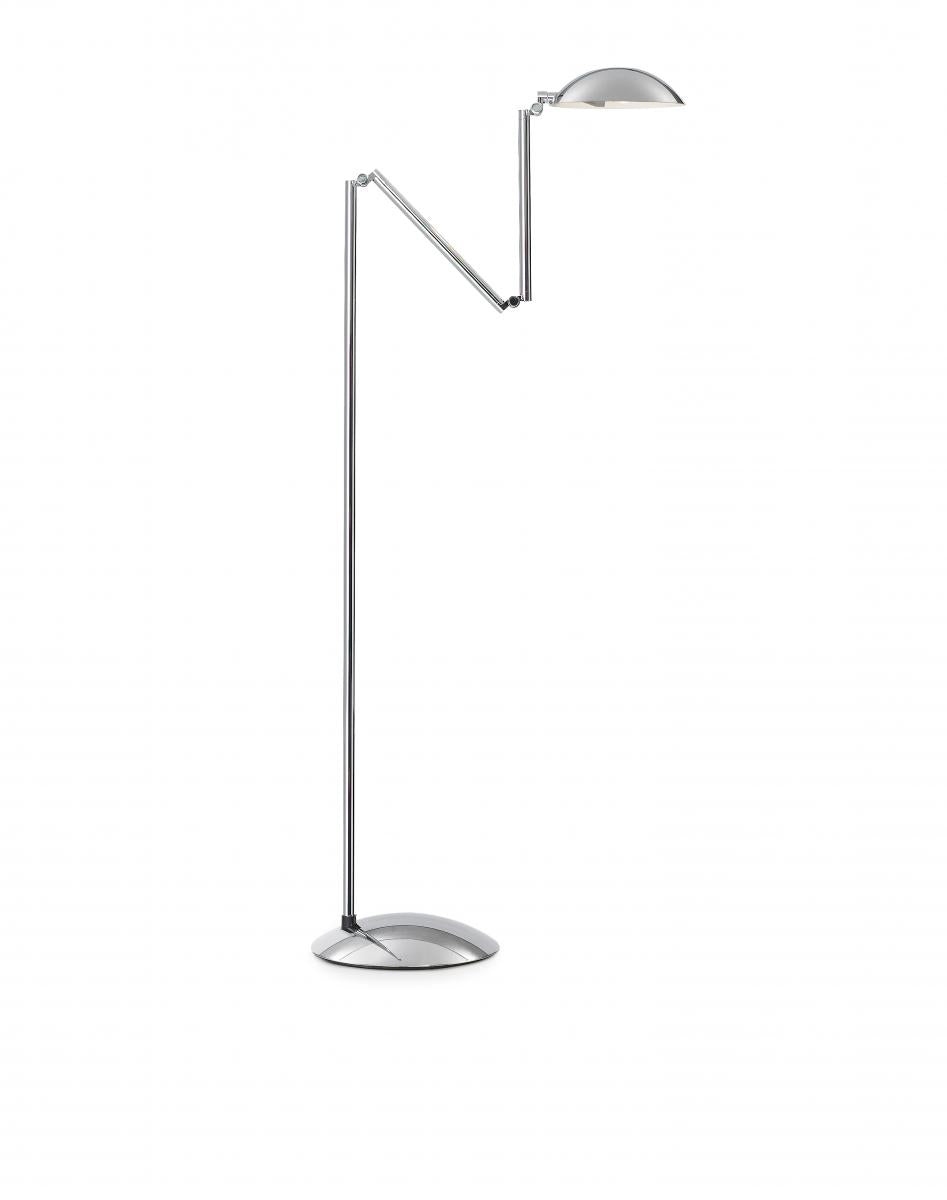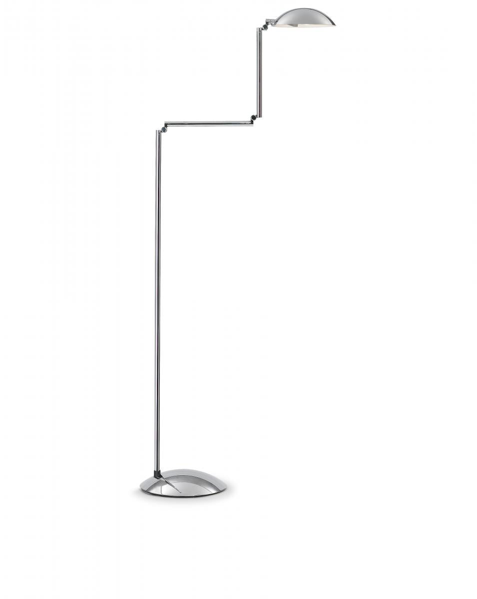 Fuss und Reflektor aus Metall mit matt schwar- zem Strukturlack oder verchromt. Rohre und Gelenke aus Metall, verchromt.