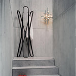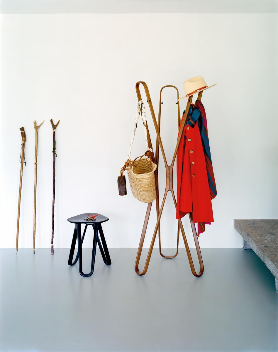 Saturn ist ein skulpturales Meisterwerk, das als unkonventioneller Garderobenständer besticht. Die grosszügigen Holzbögen laden dazu ein, Mäntel und Jacken lässig zu drapieren – oder Sie nutzen die integrierten Metallhaken für klassische Kleiderbügel. Ein vielseitiges Designobjekt, das Funktionalität mit künstlerischer Eleganz verbindet.