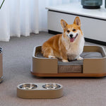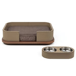 Konstruktion bezogen mit Kalbsleder, herausnehmbare Näpfe aus Edelstahl