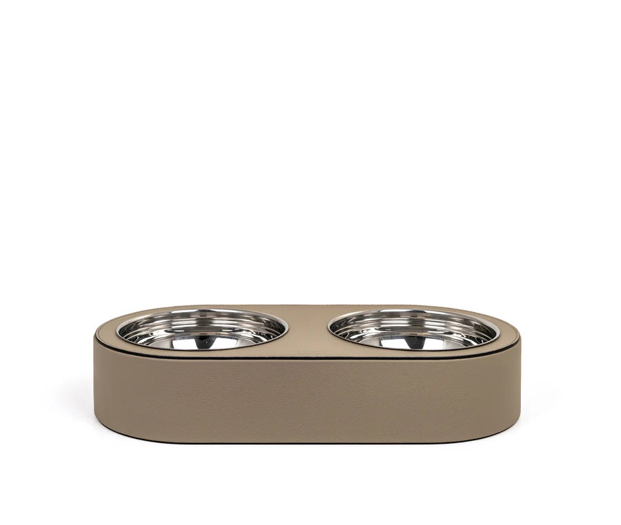 Der hochwertige Haustiernapf von Pinetti verbindet durchdachte Funktionalität mit eleganter italienischer Gestaltung. Die stabile Konstruktion ist vollständig mit feinem Kalbsleder bezogen und bietet eine langlebige, formschöne Basis für den täglichen Gebrauch.