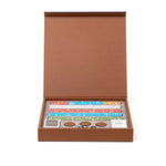 Alle Komponenten sind in einer hochwertigen Holzbox mit Magnetverschluss untergebracht, die vollständig mit echtem Kalbslederbezogen ist. Die präzise Verarbeitung und die edlen Materialien sorgen für eine angenehme Haptik, hohe Langlebigkeit und eine stilvolle Präsentation.