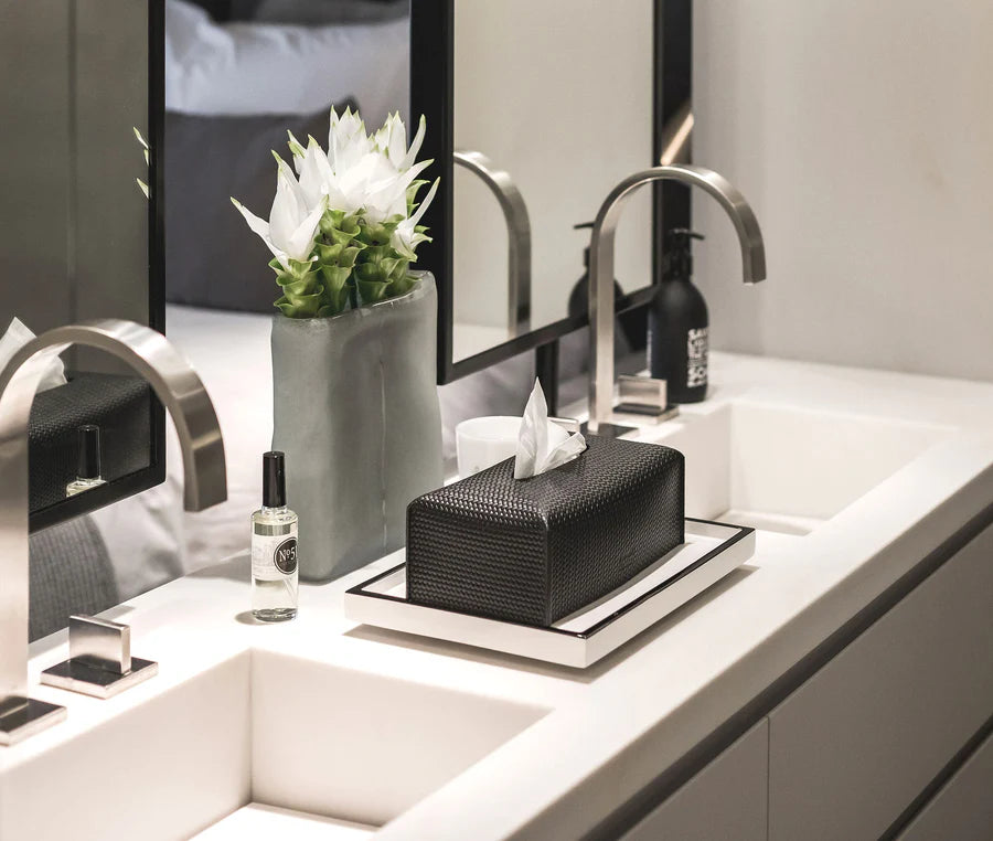Elegante rechteckige Taschentuchbox aus feinem Kalbsleder. Verfügbar in verschiedenen Farben und Ausführungen, die sich harmonisch in jedes Wohnzimmer, Schlafzimmer, Badezimmer oder Büro einfügen. Ein stilvolles Accessoire, das Funktionalität mit Designanspruch verbindet.