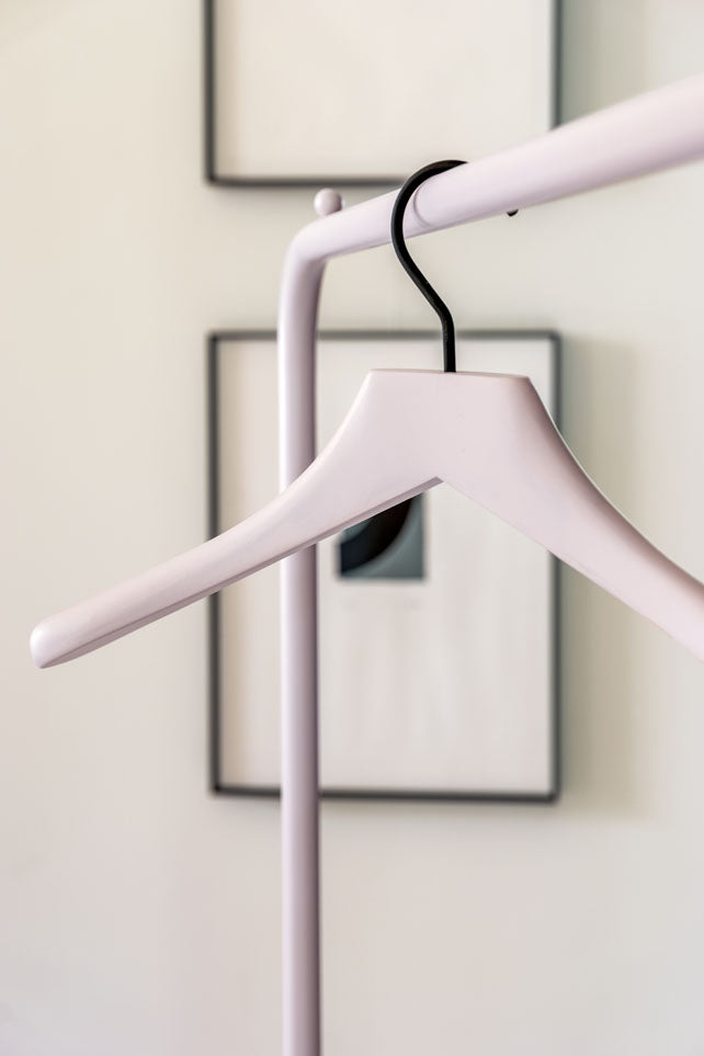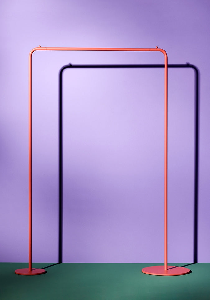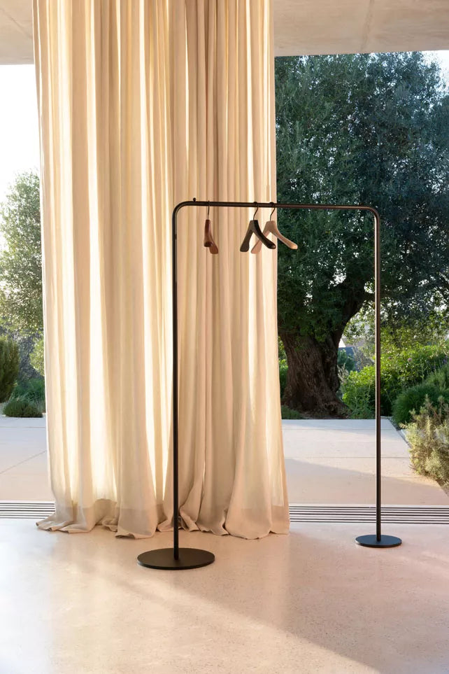 Der Garderobenständer KAMI von Schönbuch besticht durch sein minimalistisches Tor-Design. Aus pulverbeschichtetem Stahlrohr gefertigt, sorgt er mit zwei verschiedenen Tellerfüssen für Stabilität. Erhältlich in drei Farben und zwei Breiten ist KAMI vielseitig und passt perfekt in private Räume, Galerien oder Showrooms.