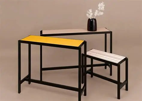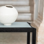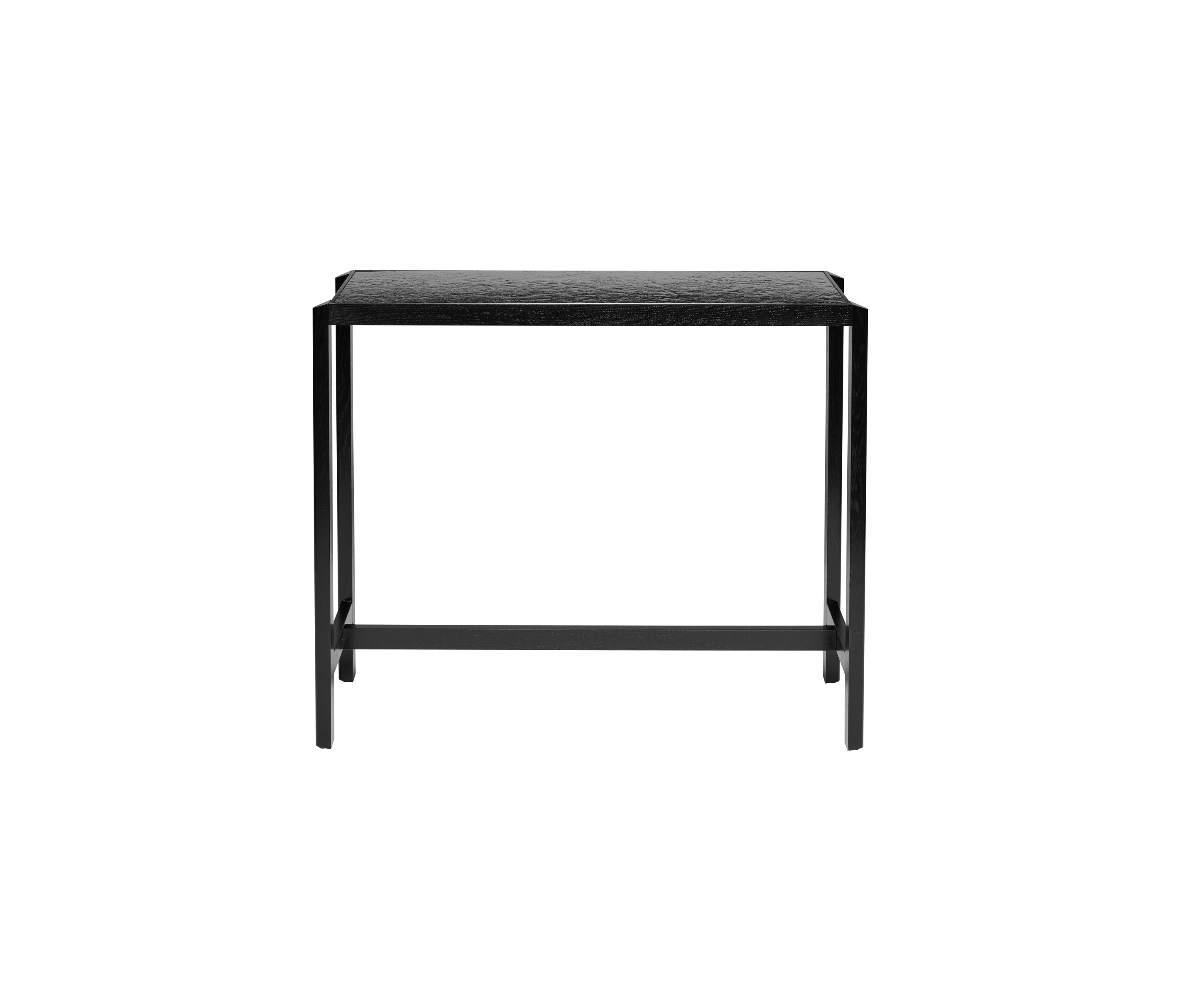 Der Konsoltisch Juste von Schönbuch besticht durch eine massgefertigte Keramikplatte in mediterranen Farbtönen der Le Corbusier Palette. Der offene, schwarz lackierte Massivholzrahmen schafft einen eleganten Materialkontrast. Juste ist ein moderner Eyecatcher und vielseitige Bühne für Pflanzen oder Deko.