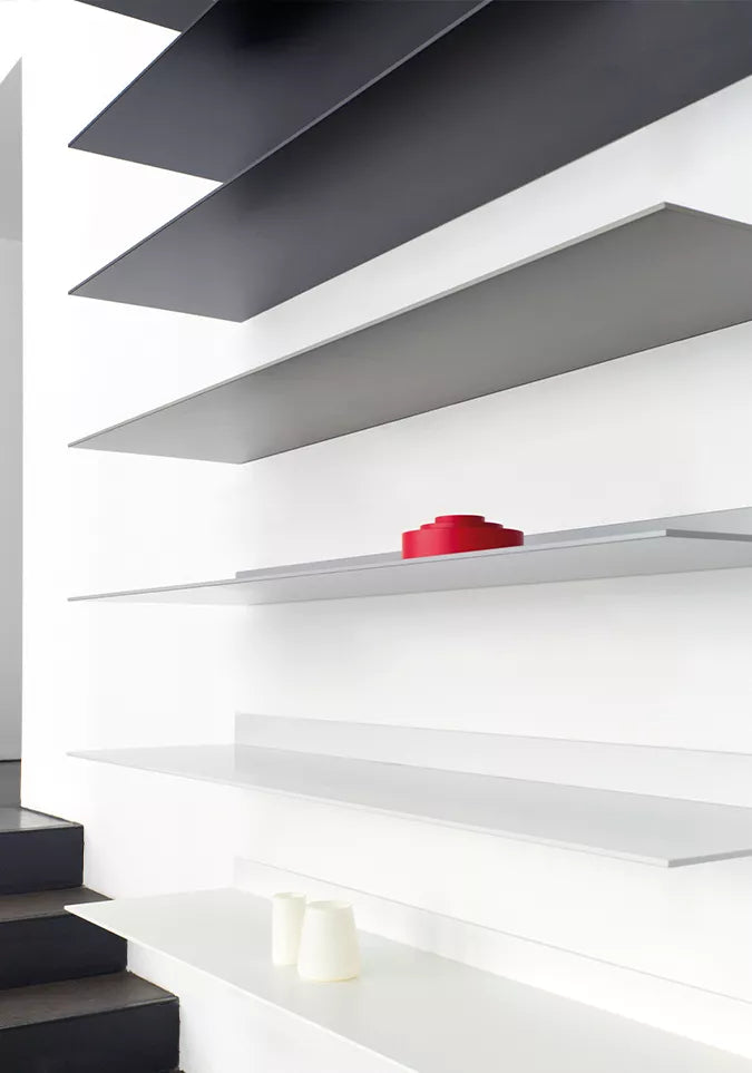Die S7 Regalborde von Schönbuch sind nur 7 mm stark und scheinen dank eines verdeckten Wandprofils zu schweben. Erhältlich in 10 Breiten von 45 bis 240 cm, bieten sie verschiedene Oberflächen in Natur-Aluminium, schwarz eloxiert oder matt lackiert in Schönbuch-Farben. Ob einzeln oder kombiniert, ermöglicht die flexible Montage in Farbe und Anordnung einzigartige Wandgestaltungen.