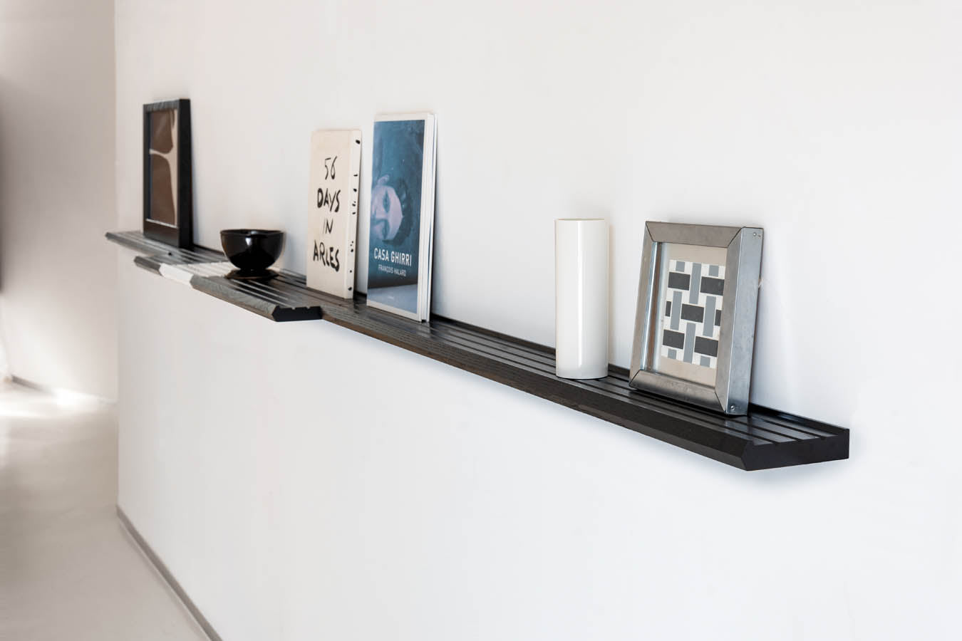 Das Regal Scena von Schönbuch aus massivem Holz mit durchgehenden Nuten bietet flexible Einsatzmöglichkeiten. Ob in Galerien, Wohnräumen oder Küchen – es eignet sich ideal zur stilvollen Präsentation von Kunst, Büchern oder Alltagsgegenständen. Verfügbar in verschiedenen Größen und Oberflächen, lässt es sich individuell anpassen und erweitern.